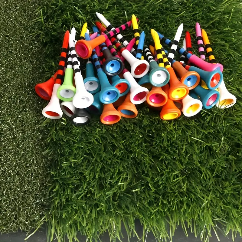 - 1.Golf Tees with Big Cup Design-- These colored golf tees all come with stripes, allowing for easy and consistent placement of depth, High visibility colored golf tees are easy to see on grass, easy to spot, and eye-catching, so you don't have to worry about losing them.